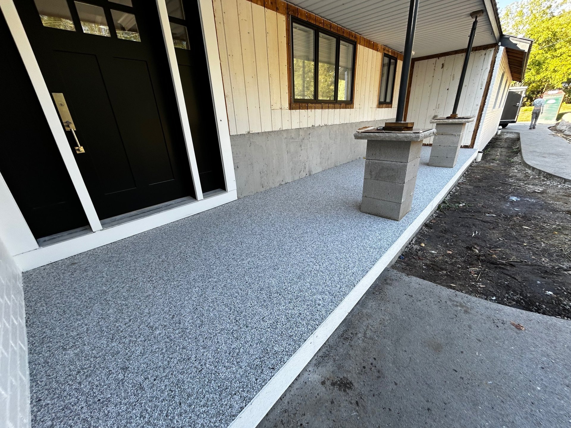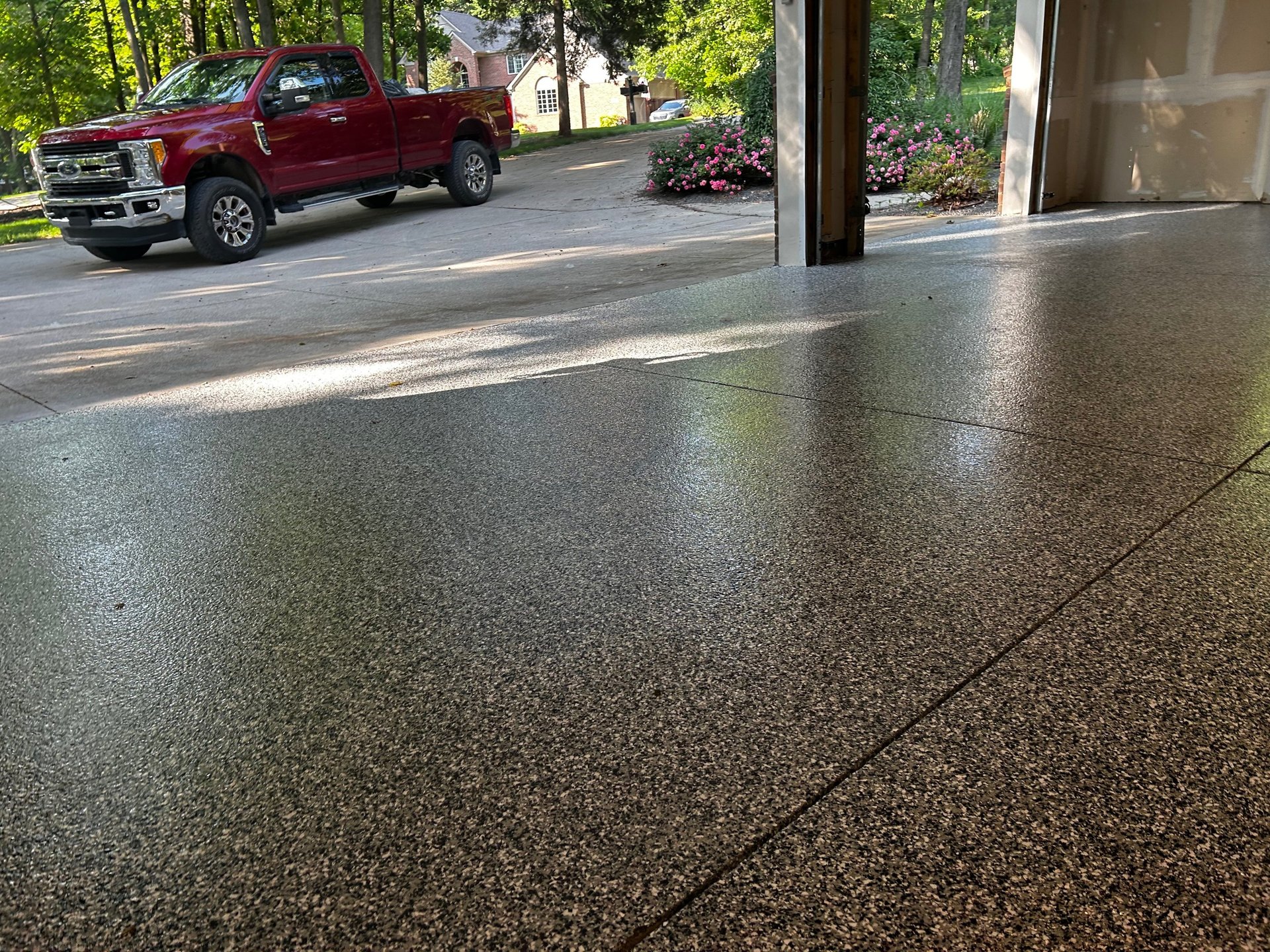 Unlike your 60% solids big-box store epoxies, our coatings are 100% solids, with our epoxy moisture vapor barrier hybrid capable of hold back 12lbs of vapor transmission, and our polyaspartics being More flexible and chemical resistant than epoxy, making a great comparable system. complete interior and exterior compatibility and are 100% UV stable with year-round installation. our coatings are also slip-resistant and stain resistant and backed with a 5 year warranty.