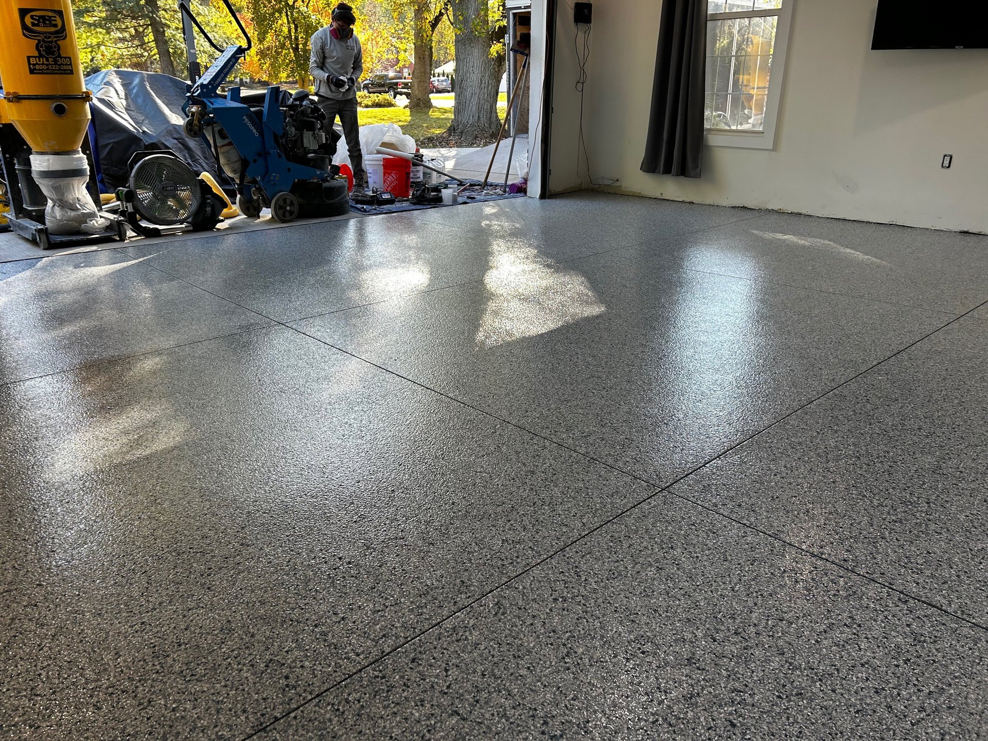 Our full flake, one-day flooring system, is a testament to our commitment to your time and satisfaction. Unlike traditional methods that can take days to complete, our streamlined process ensures your project is finished in just one day, minimizing disruptions to your daily routines and business operations.