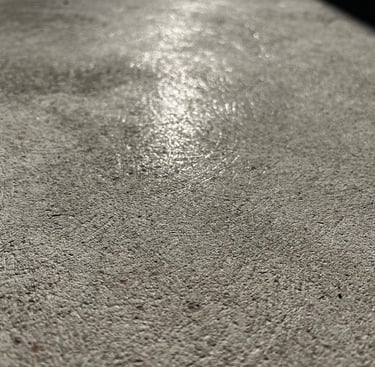 Almost all concrete surfaces have some combination of unreacted salts, surface contaminants, laitance (also known as capping), and low permeability. These all create adhesion issues for coatings. Power washing or even acid etching doesn’t solve those problems — it just cleans the surface. It doesn’t remove them. What’s needed is mechanical abrasion — the removal of the top 1/12" to 1/8" of the concrete slab. This process not only strips away the weak, contaminated surface layer, but it also opens up the concrete to accept coatings more effectively. By removing the “capped” or power-troweled layer, you expose fresh, more porous concrete and deeper aggregate. This gives the coating something clean, absorbent, and structurally sound to bond to. It also allows the material to wrap around the exposed stone, creating a much stronger mechanical grip — and ultimately, a longer-lasting floor. Want proof? Do a quick test yourself: pour some water on your power-troweled garage floor. You’ll probably notice most of it beading up on the surface instead of soaking in. Now imagine rolling an epoxy coating onto that same surface — if water can’t penetrate it, how would you expect an even higher viscosity resin to bond to it properly?